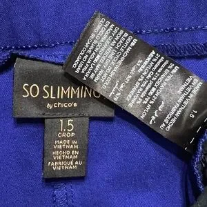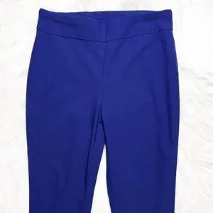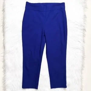 Chico’s blue pull on skinny pants. “So slimming” technology slims and smooths. Hidden elastic waist. Cropped mid calf length. Smooth woven viscose, nylon and spandex blend semi stretch fabric.