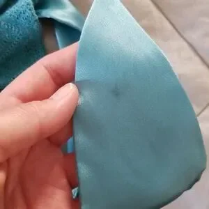 There is a slight darker spot on the satin tie (see pics). I haven't tried to wash it out, it looks like it could be a little bit of an oily spot and that it could come out.