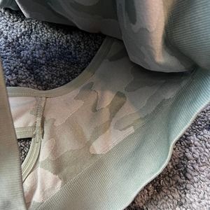- Green, Camouflage Print / Seamless Bra, Low Support, Moisture Wicking, Removable Cups, Sport Stretch
