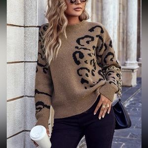 Cozy leopard print knit sweater top