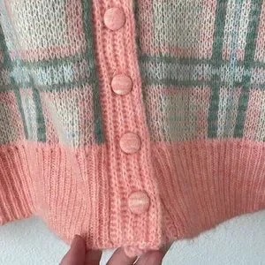Love Shack Fancy Jeeves Plaid Button Down Wool Cardigan NWT Small Pink Preppy