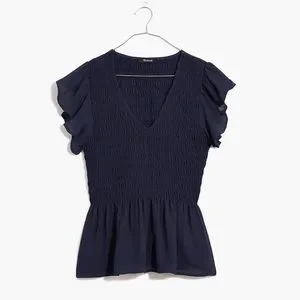 Madewell Flutter Sleeve Smocked Top EUC Size S Navy Blue