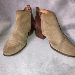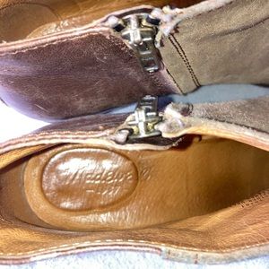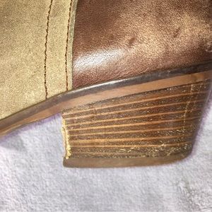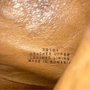 side zip. Excellent used condition. Some scuffs throughout ( some scuffs are intentional) and some damage on side of the heel but can definitely still be worn and have a lot of life left. See last pic for damage.