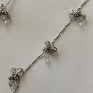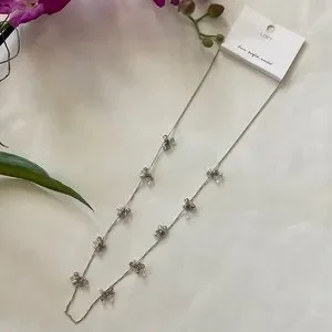 LOFT Long Silver & Bead Necklace. Silver chain with 10 small clusters of beads. Lobster claw clasp. No extender. NWT.