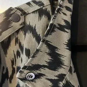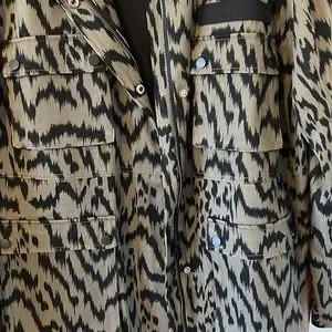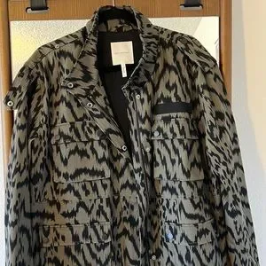 Avec Les Filles Green/Black print utility coat - green/black zig zag (almost animal print), 2 button chest pockets, 2 bottom flap pockets, terry lining, no hood