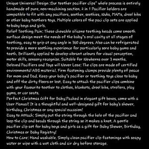 TYRY.HU Pacifier Clip Soother Chains for Babys, BPA Free Soft Silicone Teeth NWT