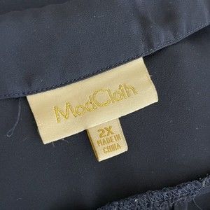 ModCloth Podcast Co Host Blouse Navy Floral Top Size 2X Plus ModCloth Navy Top. Bust laying flat is 26, length is about 29 1/2. Light gray piping throughout. The roll tabs on the inside of the sleeves have been removed. GUC.