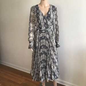 RESERVED .H&M TREND Conscious Midi SNAKESKIN PATTERNED Wrap Pleated Dress Size 8