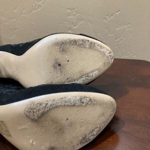 Worn a couple of times and in great condition. No flaws to note, only signs of wear is on the outer sole. Heel is just under 5" and there is a hidden platform, probably 1/2". 4 1/2" shaft height measured from the top of the heel. Back zipper. These are amazing. Comes with original box and dustbag. Original price $1145-. Smoke-free, pet friendly home, but of course, these have been tucked away in their box in a separate room away from pets.