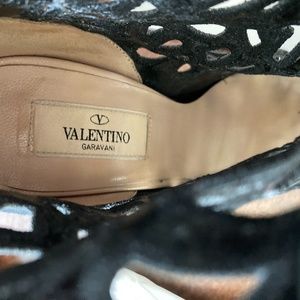 Valentino Garavani Black Suede Laser Cut Ankle Boots, Size 38