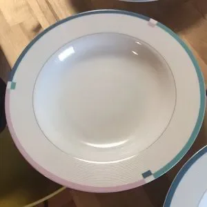 I love the color combinations. These are shallow bowl.