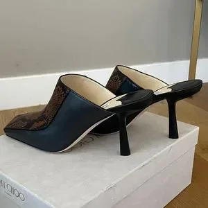 Jimmy Choo Marcel 85mm Snake Effect Leather Square-Toe Mules (Black Tan)