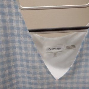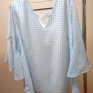 Calvin Klein - Light blue gingham V-neck blouse with bell sleeves - 0X