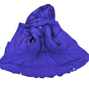 Ralph Lauren Purple Puffy Coat Peplum Detachable Snap Hood Green Pony Down XS