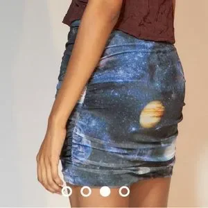 Bodycon, galaxy, ruching, highrise, skirt, mini, trendy, UO, urbanoutiftters