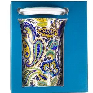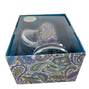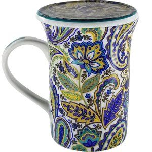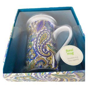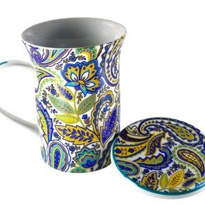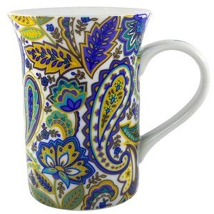 Lidded Tall 8oz Coffee Mug Gift Box Porcelain Blue/Yellow Paisley Floral B&N Mug