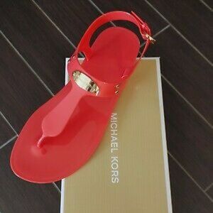 NEW MICHAEL KORS JELLY Plate Thong Sandal MK logo Coral Reef