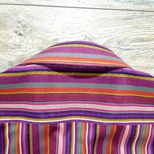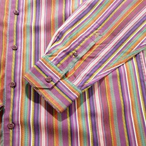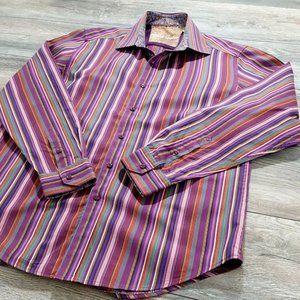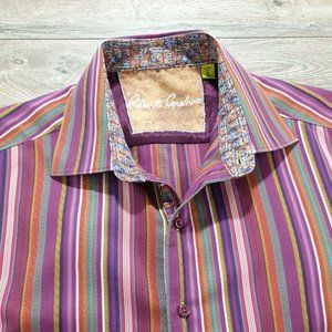 Robert Graham Mens Long Sleeve Shirt Large Designer Flip Cuff Embroidered Purple