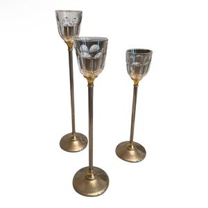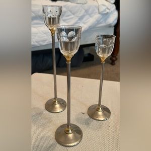 Candlestick Holder Vintage Silver Gold Glass Pedestal Home Decor Italy Set of 3