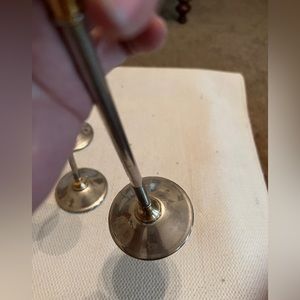 Candlestick Holder Vintage Silver Gold Glass Pedestal Home Decor Made in Italy set of 3, staggered heights. Very unique, fun vintage set. I did not try to clean them, left patina on.