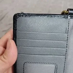 Fossil black (gold/sparkle circles)cowhide wristlet/crossbody. You can untie the straps to use it as a wristlet. It is in great pre-loved condition. Very minor wear. No rips or tears. The front has a very small scratch. (Not very noticeable.) The inside has multiple compartments. A glue stain on the inside of one compartment but the rest is very clean. (Please see all photos for all wear.)