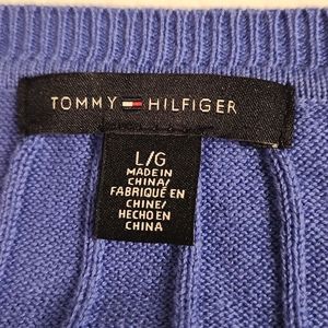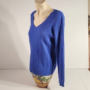 Tommy Hilfiger 100% cotton large blue sweater cable knit v neck