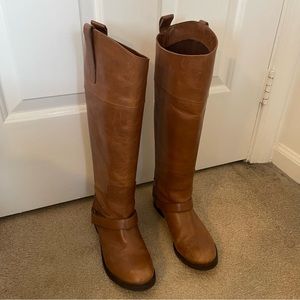 MLE chestnut brown tall distressed leather riding boots