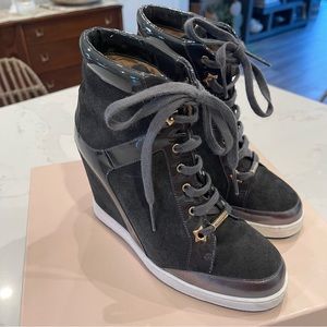 🎉HOST PICK🎉Jimmy Choo grey suede & pattern leather wedge Panama sneaker in box