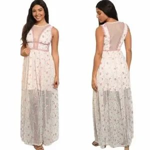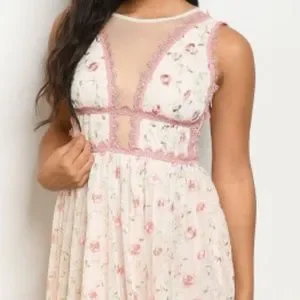 S M L PINK WITH FLOWER PRINT EMBROIDERY DRESS NWT