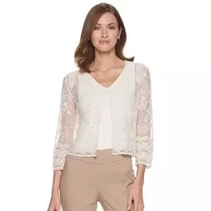 Add a lovely layer to your look with this sheer embroidered tulle bolero jacket.