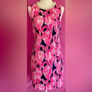 Excellent condition. Worn once. The colors are bright pink and Navy Blue.