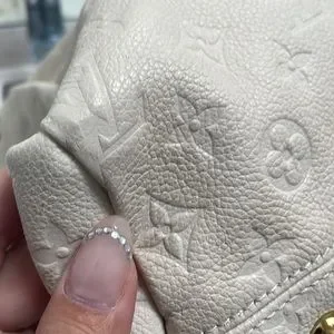 Beautiful authentic Louis Vuitton MM Artsy bag with monogrammed Empreinte embossed leather. This bag is in good condition. Some minor markings on bag, and corners. The D ring and key holder is included however has some minor cracking from normal use see photos. I tried my best to incorporate the markings however the markings are minor and cannot be see unless your looking for them.