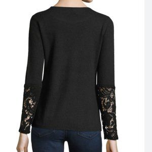 Neiman Marcus Cashmere Collection Black Cashmere Crochet-Cuff Sweater Size XL