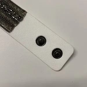 NWT White suede band bracelet with smokey crushed rock-like rhinestones. Has an adjustable snap closure.