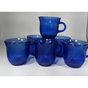 1950s Set of 6 ForteCrisa Mexico Sunflower Design Cobalt Blue Glass Coffee Cups