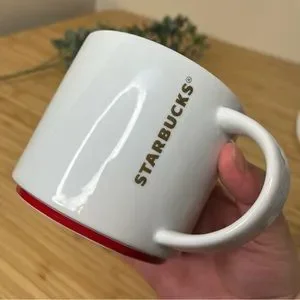 Starbucks 2012 Gold Lettering with Red Bottom Stackable Rim Coffee Tea Mug