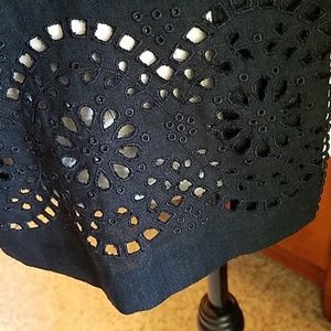70. Laura Ashley jacket, collar-less black linen, laser cut, EUC