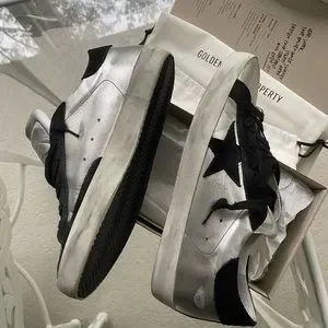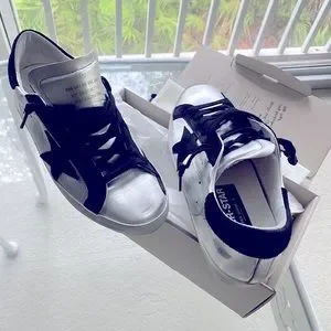 Golden Goose silver metallic black suede Star Super-Star sneakers