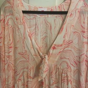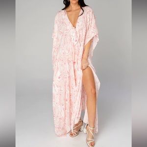 Worn once! Look flawless in our Mamie Caftan! Her fit is extremely generous, she has two slits on the side and a tie detail on the bust! She doubles as a dress for dinner or coverup for the pool. Pair her with a platform sandal or your favorite wedge.