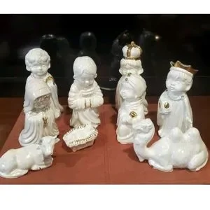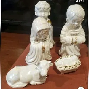 Signed Vintage 1975 Arnel's Ceramic Nativity Holy Family 3 Kings Shepherd Etc... Iridescent Glazed Ivory & Gold Bisque Ceramic Christmas Nativity Scene, Approx 9" Largest Figurine - Excellent vintage condition, No flaws.....Enjoy!