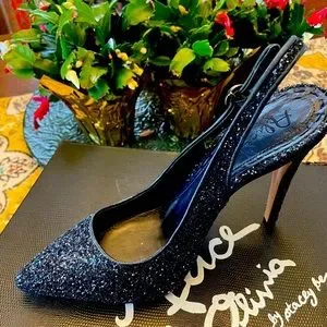 Gorgeous Navy Sparkle Stiletto US size 8. With a pointy toe. I usually wear a size 7 1/2 in a stiletto heel, I can wear this size 8. Saks fifth Avenue - Brand New Never Worn . See all pictures. 5 Inch Heel. New with Box.