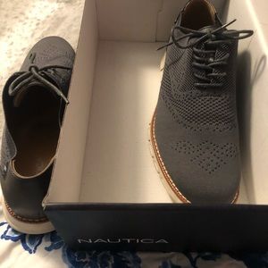 Nautica Mens Lightweight Oxford Style Tie Up Barely Worn Shoes Grey Color EUC