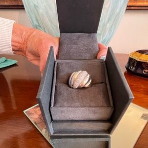 David Yurman Hampton Cable Ring with Diamonds in Sterling Silver This stunning ring is featuring 0.91 carats of round brilliant cut diamonds. Previously owned, in excellent condition. The ring has been professionally cleaned and polished. Comes with original David Yurman ring Box. Sold out in stores, extremely RARE! * Sterling Silver * 51 Round Brilliant Cut Diamonds * Ring, 20 mm Wide (front) 8mm (back) * Ring Size 6.5 * Signature: D.Y. * Hallmarks: 925 * Total Item Weight: 22.5 gr * Stone Shape: Round Brilliant