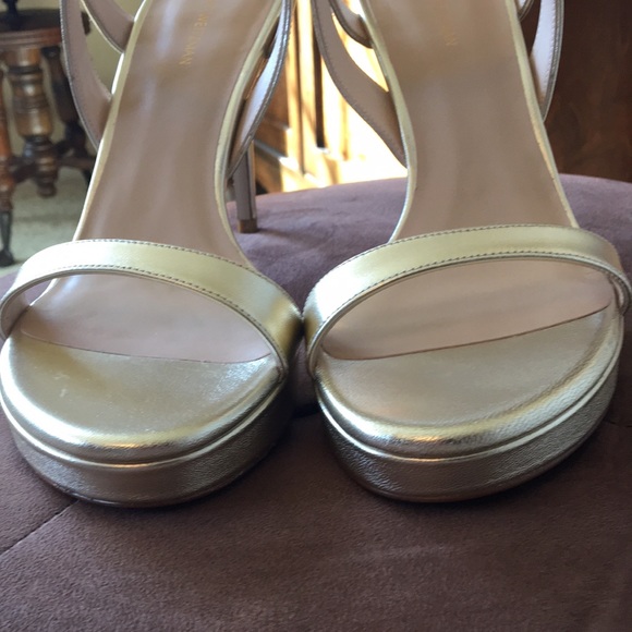 These are beautiful and classy. Gold strappy heels. The style is Platino MTN-metallic Nappa. Purchased to wear at a wedding but decided against them in the end. These have been tried on but not worn. Comes with original box and dust bag. Sweet deal!