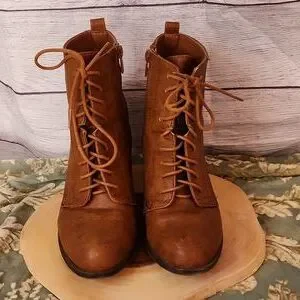 top Moda booties. 3" heel lace up zip sides cute. great pre loved condition