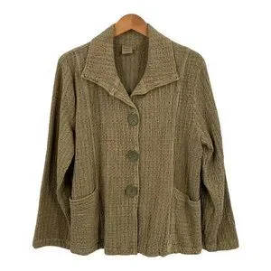 FOCUS Moss Green Waffle Textured Cotton Casual Jacket Size Large Lagenlook