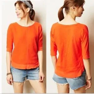 Anthropologie Orange Gauze Circle Tee Shirt Top