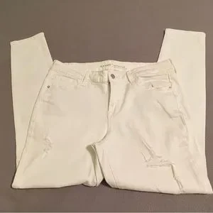 Old Navy Rockstar Mid-Rise White Distressed Skinny Jeans Size 12