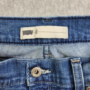 Womens Levis Capris Size 6 Blue Cuffed Stretch Cotton Straight Leg Mid Rise