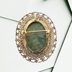 Vintage Brooch with green center stone marked and signed Sterling K.L.